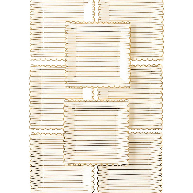 When you want your Holiday goodies to be the start of the show, make sure that they are on these gold striped plates. Designed with simple gold foil stripes on scalloped white paper plate, these party plates are anything simple, and add the perfect amount of sparkle to your Christmas party table this year!